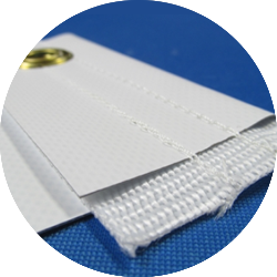 Reinforced webbing is 3X stronger by sewing cross-stitched 1 inch nylon strip inside of the reinforced edges. It is commonly used on large banners for maximum strength and durability. The grommets will penetrate through 2 layers of vinyl and 1 additional layer of webbing, which greatly reduces the risk of the grommets tearing out in wind.
